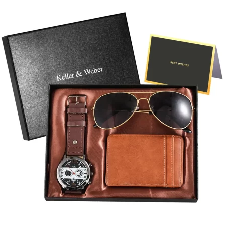 New Men’s Quartz Watch Wallet Sunglasses Combination Gift Set Box