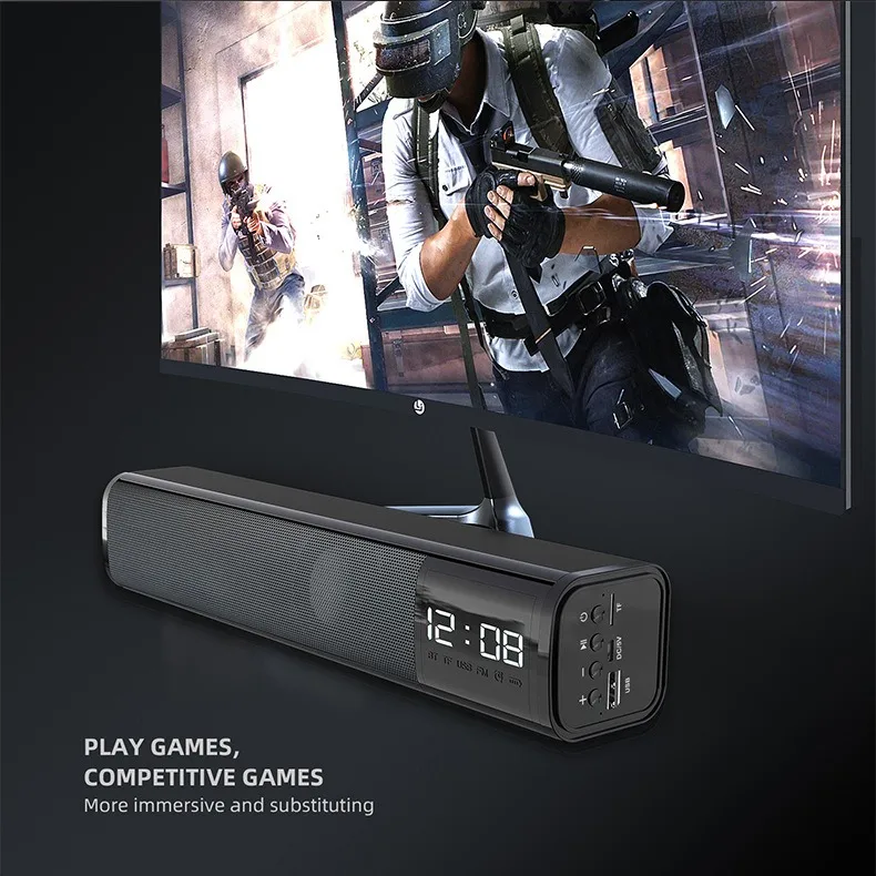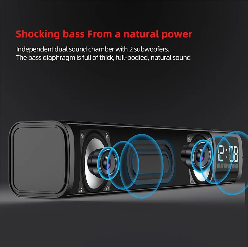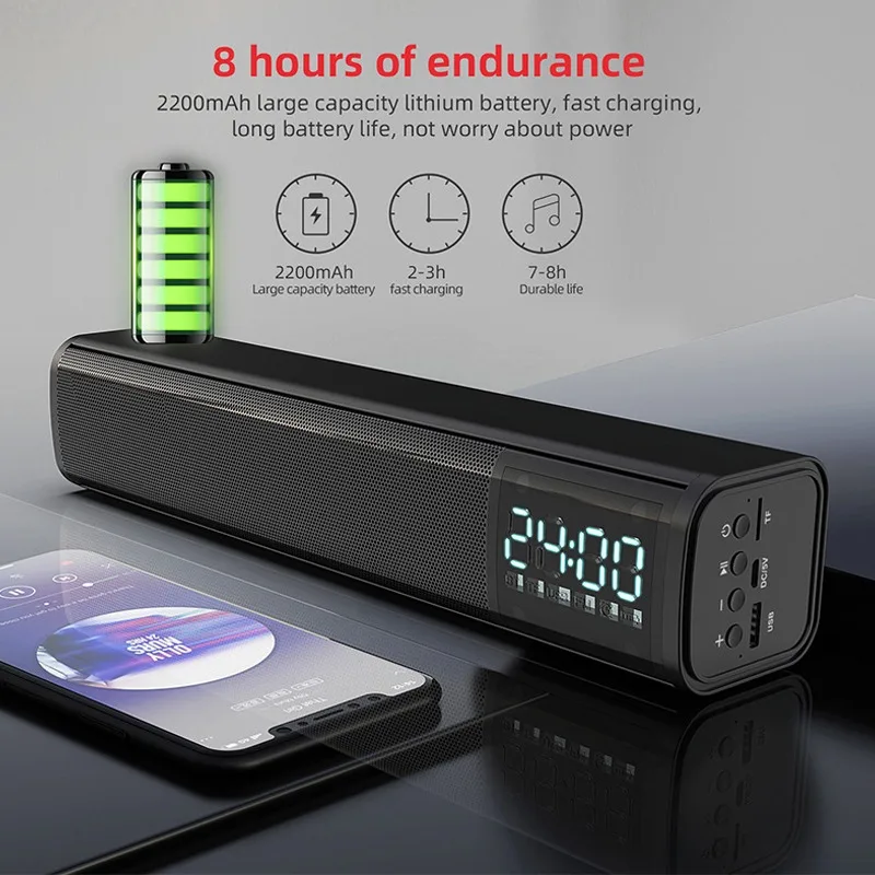 2022 new S8 alarm clock display speaker hight quality portable sound bar 5.1 surround sound speaker for home theatre