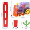 As the train moves forward, it will place the dominoes in a row.